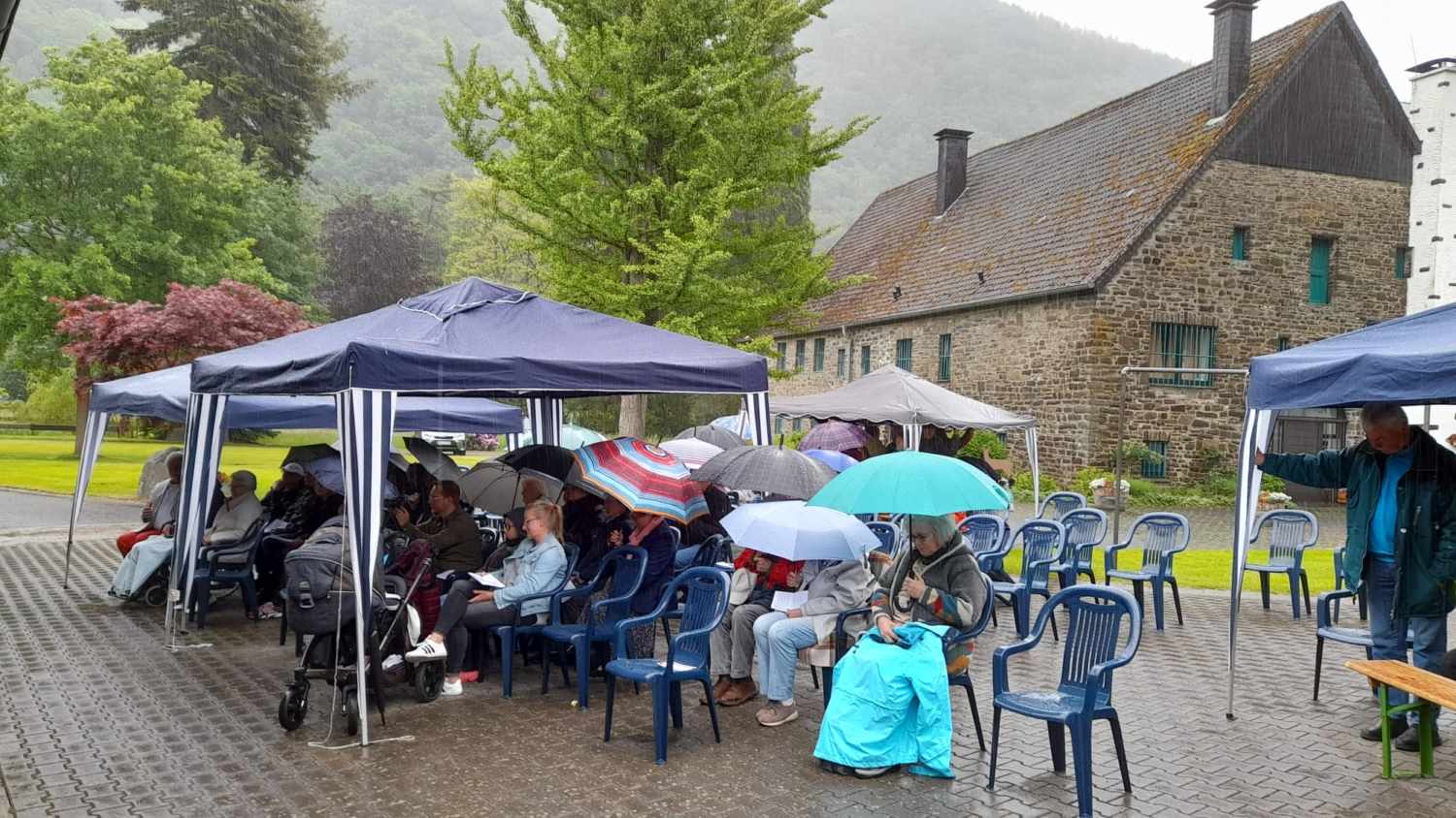 Es ist nicht immer Sonnenschein. Manchmal regnet es. So auch beim Freiluftgottesdienst auf Gut Bockeloh. 120 Menschen waren dabei. Kinder, Jugendliche, Erwachsene plus eine Tauffamilie. Danke an die Jugendfeuerwehr der Stadt Werdohl für die Grill Verpflegung! Danke an den TUS Versetal für die Kaltgetränke! Danke an Ute und Maik Trautmann für die Gastfreundschaft! Danke an die Firma KRACHT für die problemlose Bereitstellung des Parkplatzes! Sie alle und noch manche mehr haben es ermöglicht. Ein wunderschöner Sonntag mit einem ganz besonderen Gottesdienst an einem außergewöhnlich schönem Ort!