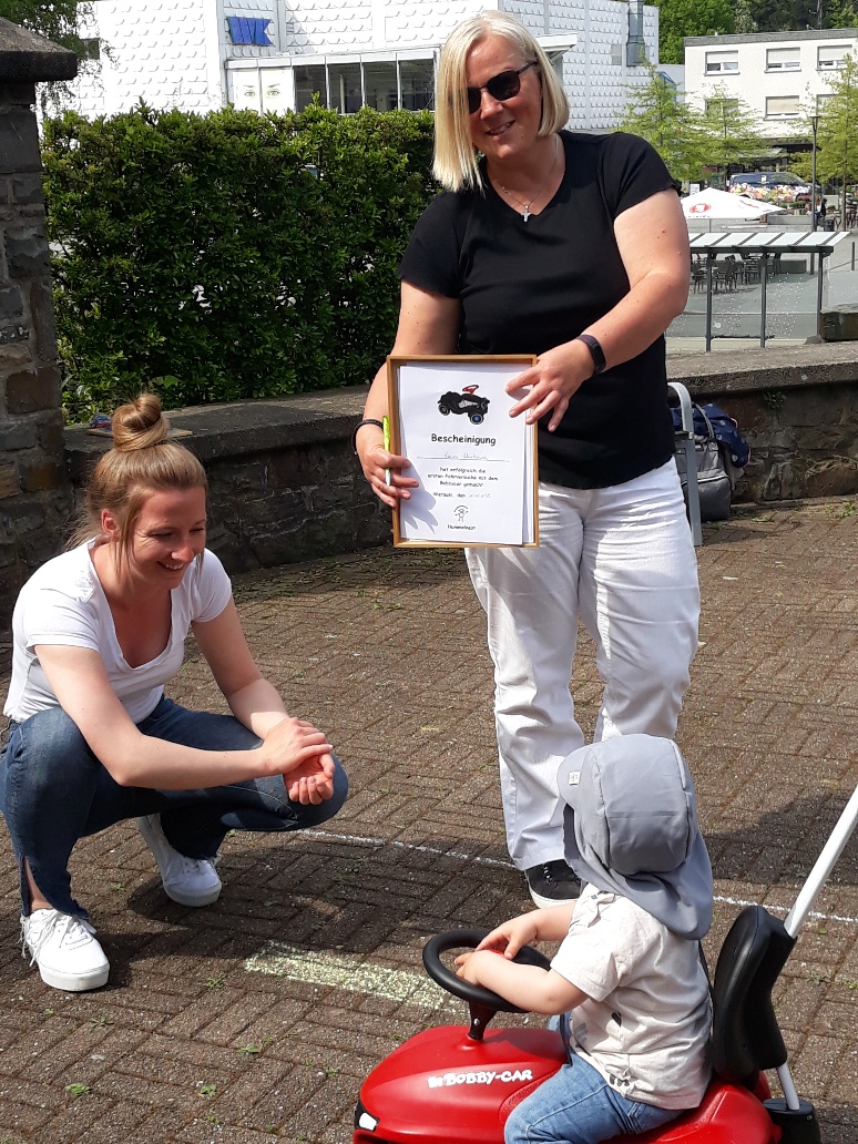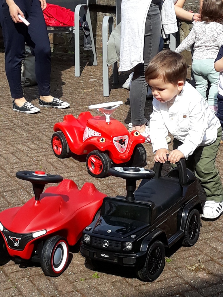Endlich mal wieder ein richtiges Hummelgewimmel im Rondell des Gemeindehauses Christuskirche. Die Kleinsten machten es sich auf der Krabbeldecke gemütlich und die Großen konnten Bobbycar fahren. Malkreide war auch noch im Angebot, mit dieser wurde eine Straße aufgemalt und wer diese mit seinem Bobbycar befahren konnte, bekam seine Fahrkünste bescheinigt.