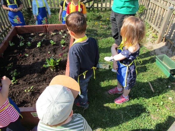 Einmal im Jahr besucht die Edeka-Stiftung die Ev. Kita Sternschnuppe. Die Mitarbeiter bepflanzen mit den Kindern das Hochbeet mit verschiedenen Gemüsesorten. Natürlich wird auch alles ganz genau mit den Kindern besprochen. Jetzt warten die Kinder und Erzieher/innen ganz gespannt auf leckeres Gemüse.