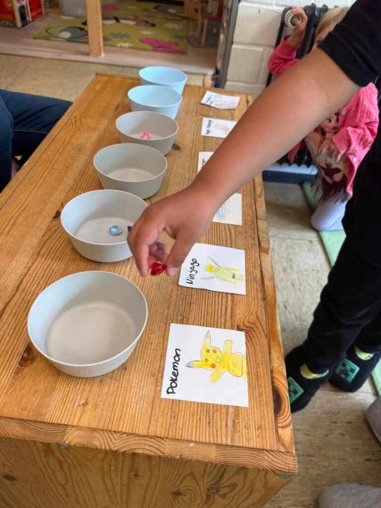 Monatsthema von Kindern geplant: Jeden Monat wird ein neues Thema aufgegriffen, das den Alltag spannend und lehrreich gestaltet. Beispiele sind Tiere im Wald, Berufe, Farben oder Unser Körper. Die Kinder dürfen mitentscheiden, welches Thema sie interessiert und wie es gestaltet wird. Ideen werden gesammelt, in der Gruppe besprochen und abgestimmt. Auf diese Weise erleben die Kinder: Meine Ideen zählen.
